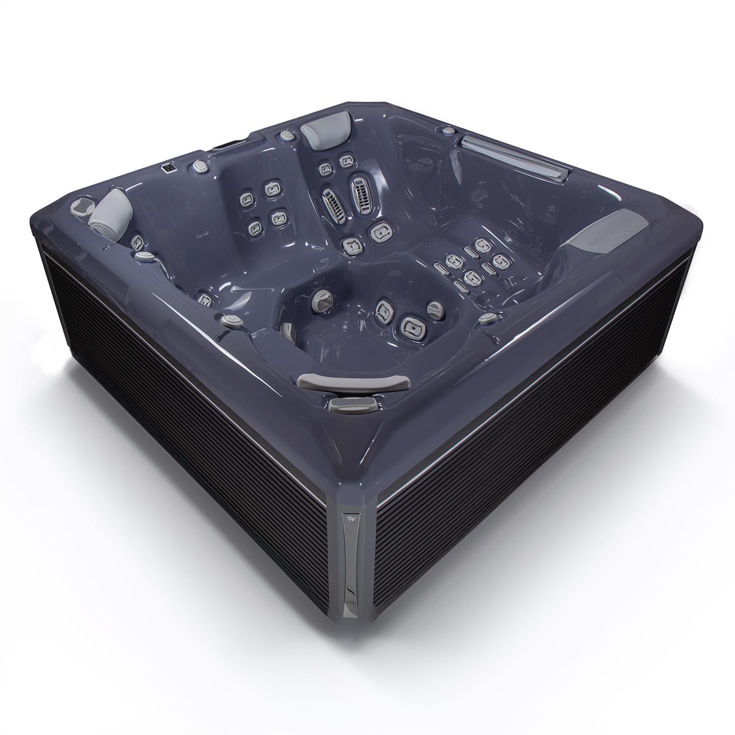 The LightSide™ cabinet system appears in PeakLife spas, which include concealed lighting beneath the corner elements, and an in-house-developed LED strip running along the spa’s side cover.