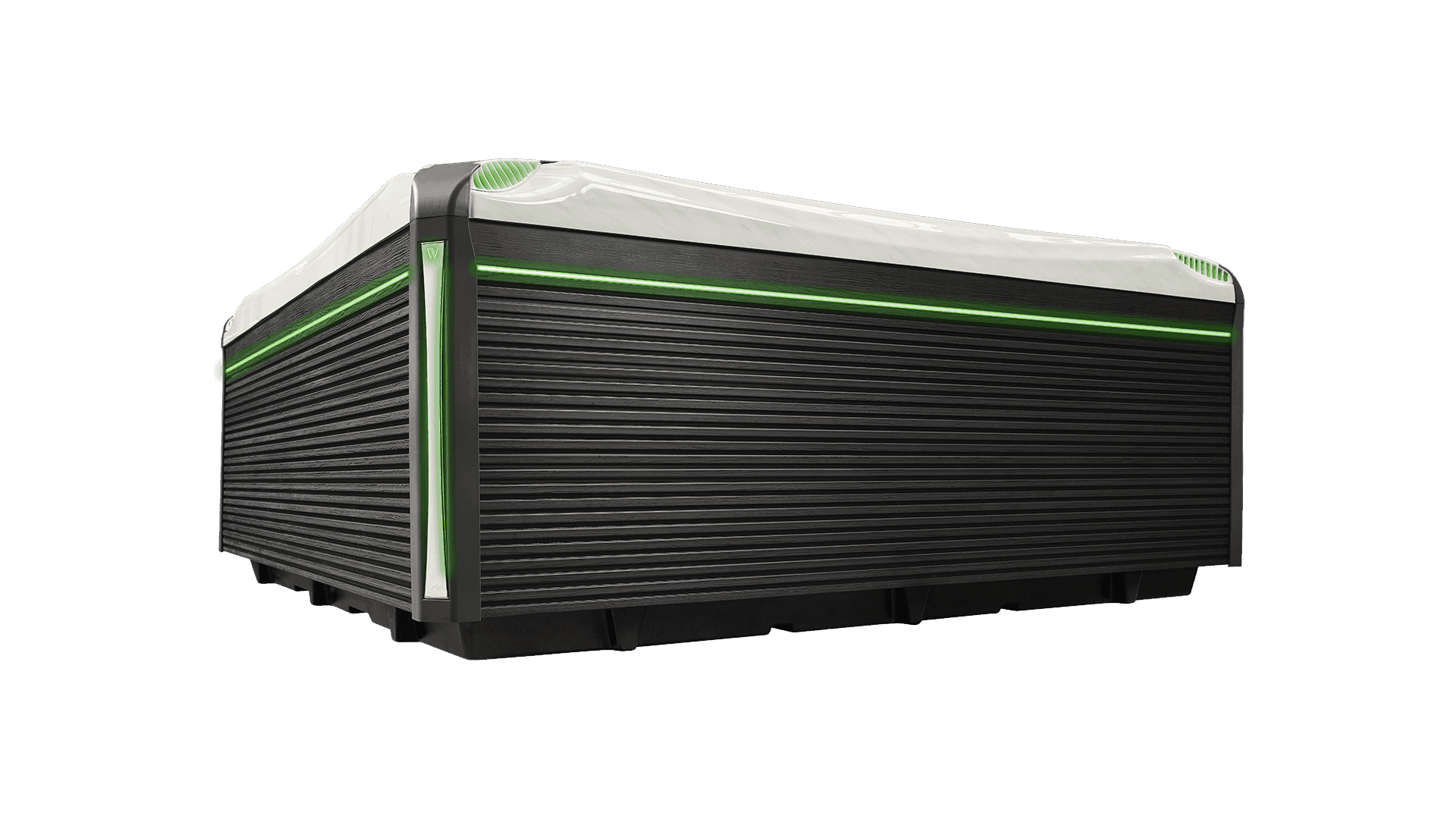 The LightSide™ cabinet system appears in PeakLife spas, which include concealed lighting beneath the corner elements, and an in-house-developed LED strip running along the spa’s side cover.
