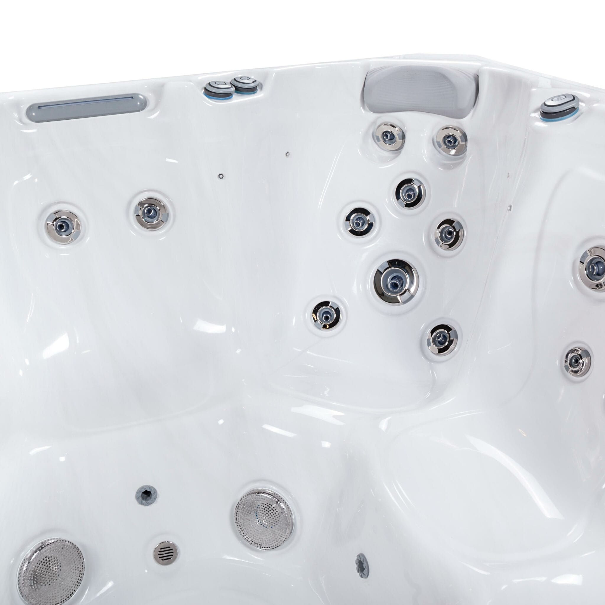 Maximum thermal insulation, minimal energy consumption. Seamlessly installed insulation panels and air pockets in the base plate effectively retain the water temperature, preventing heat loss. The internal heat-reflective foil reflects the heat generated by the massage motors, accelerating the water heating process. Experience unparalleled comfort and efficiency!