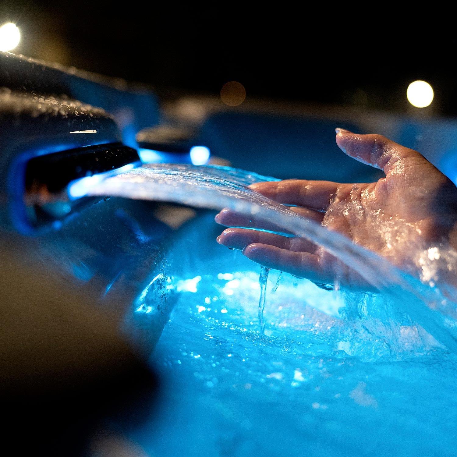 Our Vienna spa was specially designed for entertaining and relaxing larger groups, as 7 people can participate in the wellness experience of the exclusive pool at the same time. The spacious interior allowed the installation of the WellDome™ foot massage system in the hot tub floor.